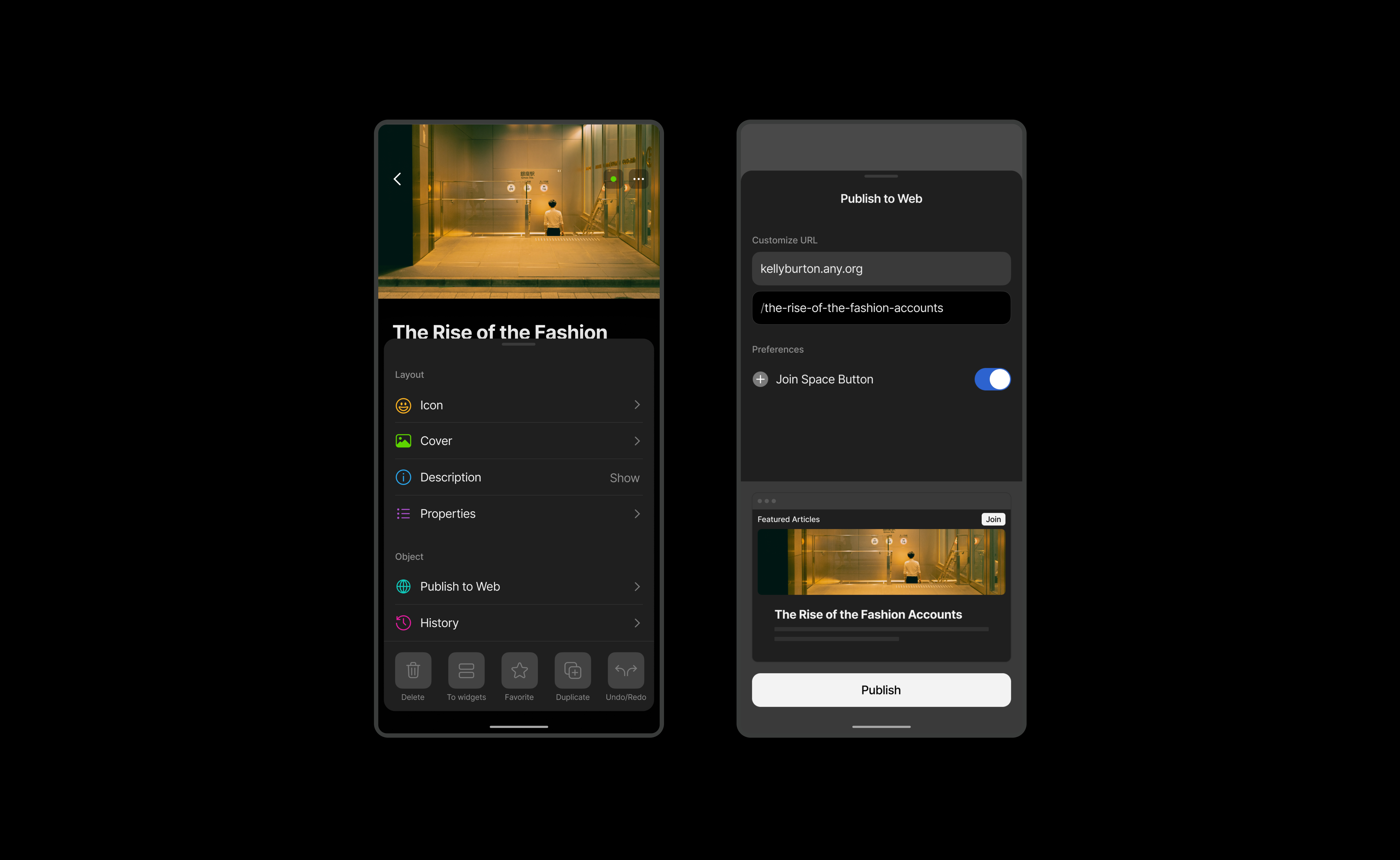 You can now publish your Anytype objects on the web directly from the mobile app, bringing full feature parity with desktop and making it easier to share your creations wherever you are.